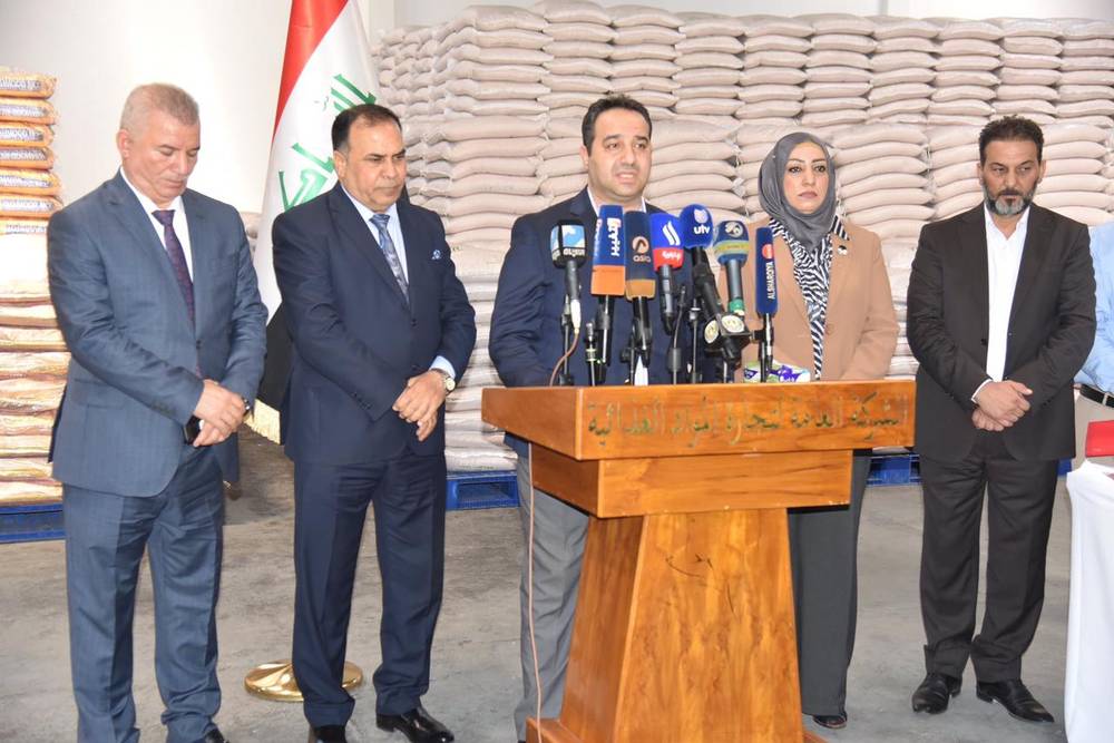 وقال وزير التجارة علاء الجبوري خلال مؤتمر صحفي عقده في مخازن الكرخ ببغداد، ان “مخازن وزارة التجارة تستقبل منذ ايام كميات كبيرة من المواد الغذائية ذات النوعية الجيدة من مفردات السلة الغذائية وهي الزيت والسكر والحمص والفاصوليا و معجون الطماطم والرز البسمتي الهندي”.